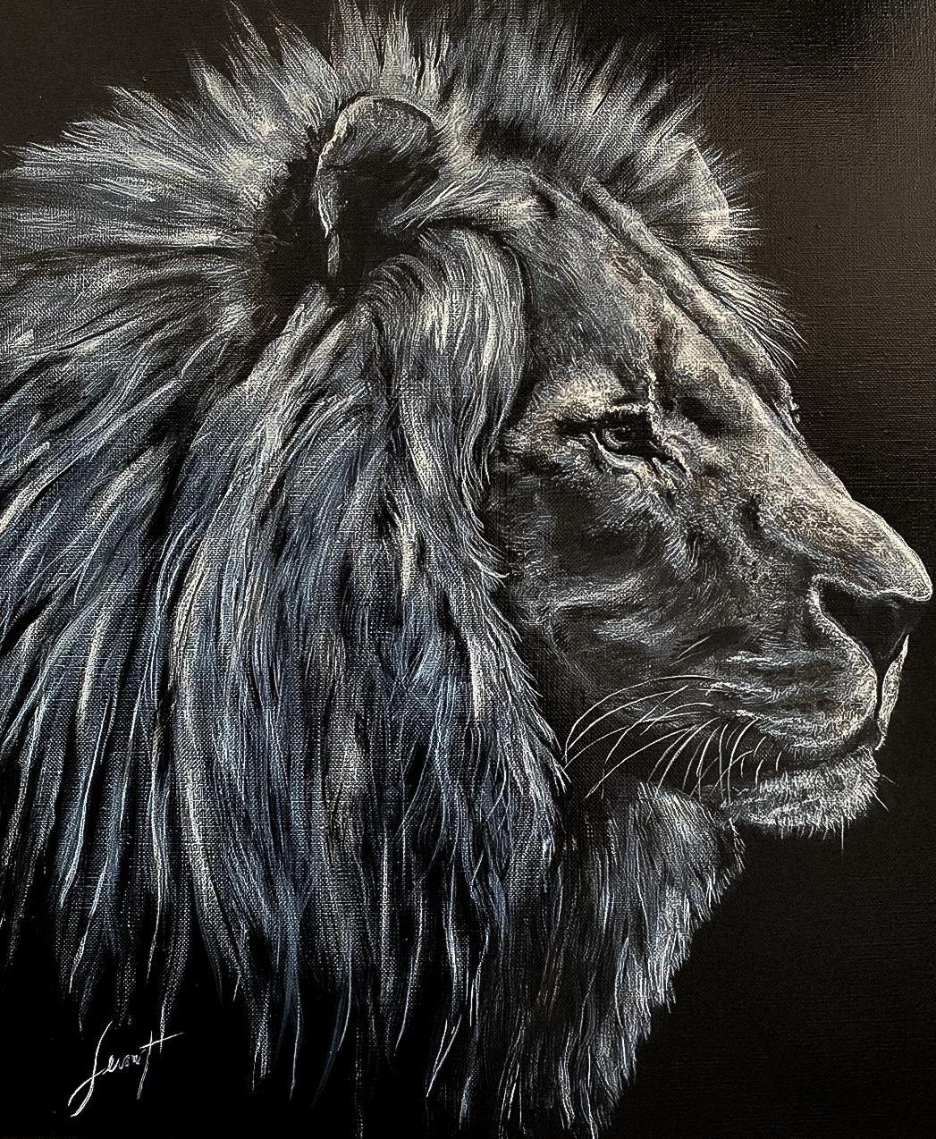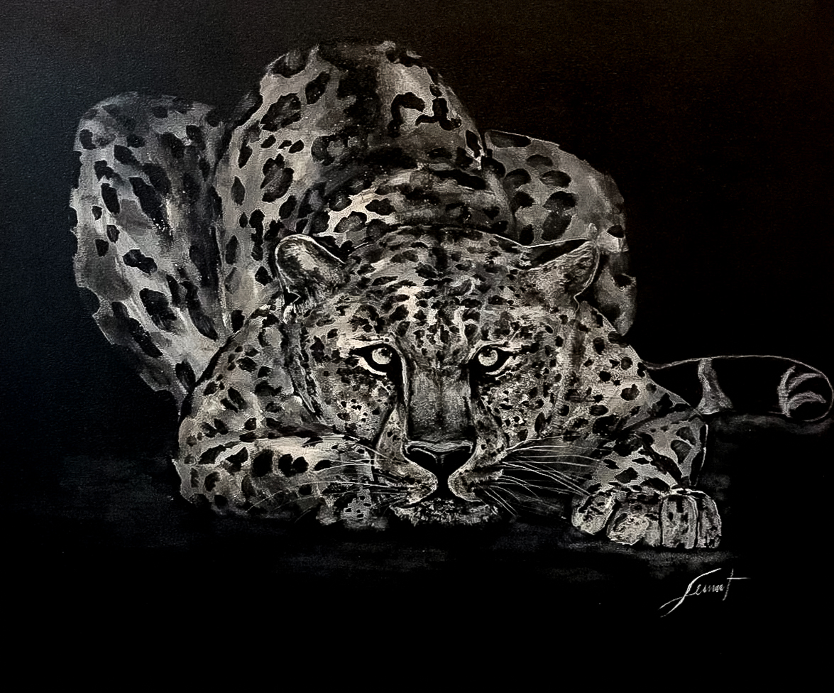 The attentive gaze of a mother on her young, the patient eye of the patriarch, the passion of the young predator… Wild animals, like big cats, give off such an aura in their eyes that it seemed essential to Jérôme Serving to highlight their looks through a deep black.