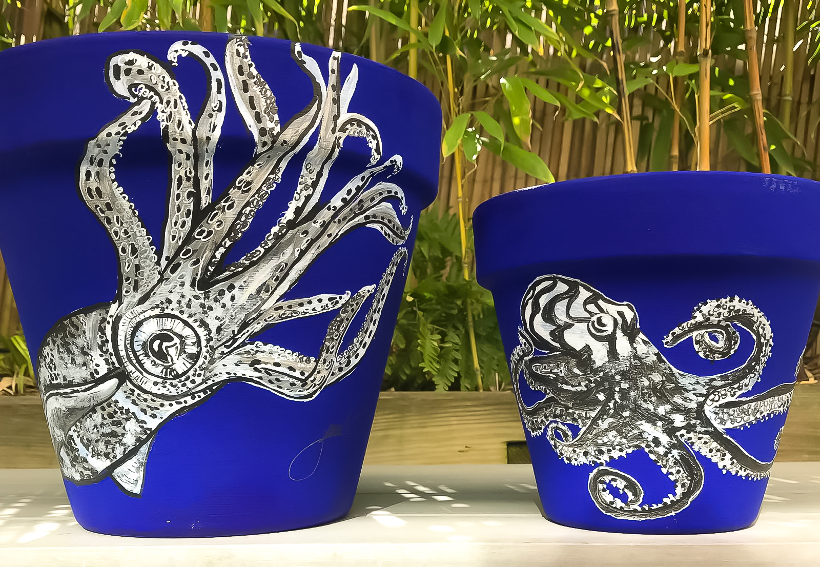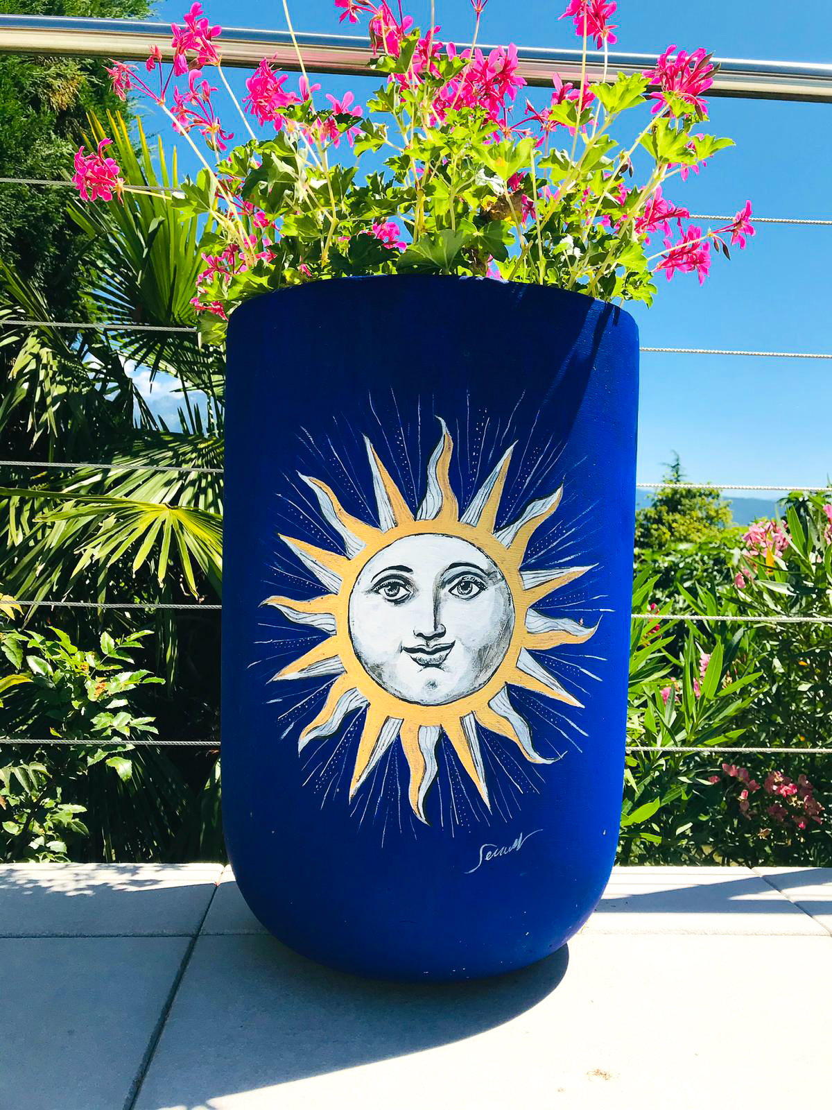 Captivated by this piercing blue, recognizable among thousands, Jérôme Servant delivers, in this collection of terracotta pots, a happy homage to the gardens of Yves Saint-Laurent and Pierre Bergé.